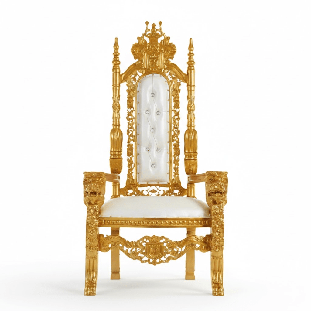 Crafted with exquisite detail, our White King Throne Chair features plush white upholstery, intricate gold accents, and a towering backrest that commands attention. Its majestic presence is perfect for creating a focal point, whether it’s for a grand entrance, a VIP seating area, or the ultimate photo booth prop. This chair isn’t just furniture; it’s a work of art designed to make you feel like royalty.